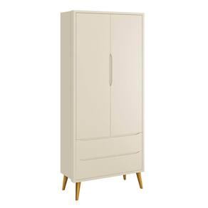 Características Principais: • Retrô; • Pés pontiagudos em madeira; • Possui 02 portas e 02 gavetas; • Garante maior organização e praticidade; • Acabamento UV Atóxico; • Possui corrediças telescópicas e cabideiro metálico; • Conta com puxadores embutidos. • Medidas do Produto - Altura: 2.05m | Comprimento: 90cm| Largura: 46cm.
