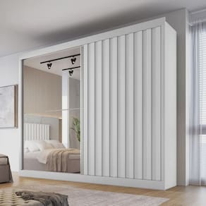 Guarda Roupa Ripado com Espelho - Atlanta-Branco Acetinado - Made Marcs