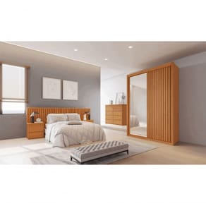 1 Guarda Roupa Solteiro Ripado com Espelho 2 Portas 3 Gavetas - Pietro - Móveis Bettio