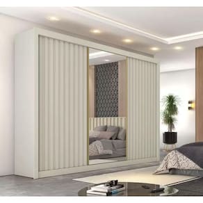 Guarda Roupa Ripado com Espelho Central - Refletto-Off White - Móveis Europa