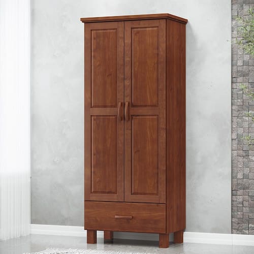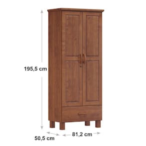 Características: Estrutura 100% em Madeira Maciça Pintura Acetinada Verniz PU e UV Amplo Espaço para Armazenamento Montagem Bipartida 01 Gaveta com Corrediças Metálicas 02 Portas com Dobradiças Metálicas Cabideiros em Alumínio (Peso Máximo Suportado 08kg Distribuídos); Peso Máximo Suportado pela Gaveta 05kg Distribuídos Peso Máximo Suportado pelas Prateleiras 08kg Distribuídos