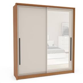 Guarda Roupa Roupeiro 2 portas de correr 2 gavetas com Espelho Valência Freijó Creme Politorno Móveis - Freijó | Bege