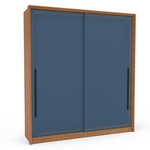 Guarda Roupa Roupeiro 2 portas de correr 2 gavetas Valência Freijó Azul Politorno Móveis - Azul | Marrom