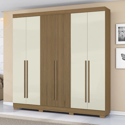 Características: Estrutura em MDP Pintura semi-brilho 06 Portas articuladas com dobradiças metálicas 02 Gavetas com corrediças metálicas Detalhes ripados nas portas Cabideiro de Madeira Amplo espaço interno Puxadores em MDF