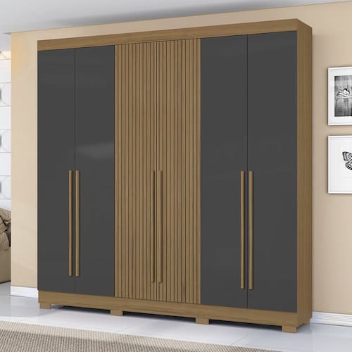 Características: Estrutura em MDP Pintura semi-brilho 06 Portas articuladas com dobradiças metálicas 02 Gavetas com corrediças metálicas Detalhes ripados nas portas Cabideiro de Madeira Amplo espaço interno Puxadores em MDF