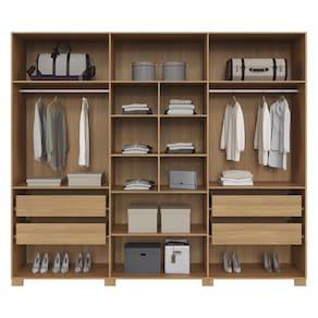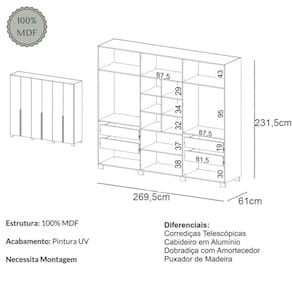 Características: Estrutura 100% MDF Acabamento em Pintura UV 04 Gavetas Internas Corrediças Telescópicas Puxadores em MDF 02 Cabideiros em Alumínio 06 Portas Articuladas Dobradiças com Amortecedor Prateleiras Pés em MDF