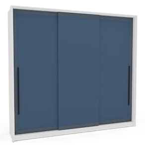 Guarda Roupa Roupeiro 3 portas de correr 4 gavetas Valência Branco Azul Politorno Móveis - Branco | Azul