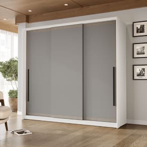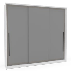 Guarda Roupa Roupeiro 3 portas de correr 4 gavetas Valência Branco Cinza Politorno Móveis - Branco | Cinza
