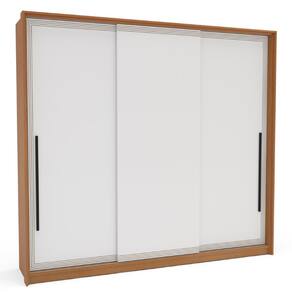 Guarda Roupa Roupeiro 3 portas de correr 4 gavetas Valência Freijó Branco Politorno Móveis - Freijó | Branco