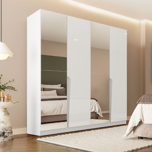 Guarda Roupa Roupeiro 4 Portas 4 Gavetas com Espelho Porto Branco Politorno Móveis