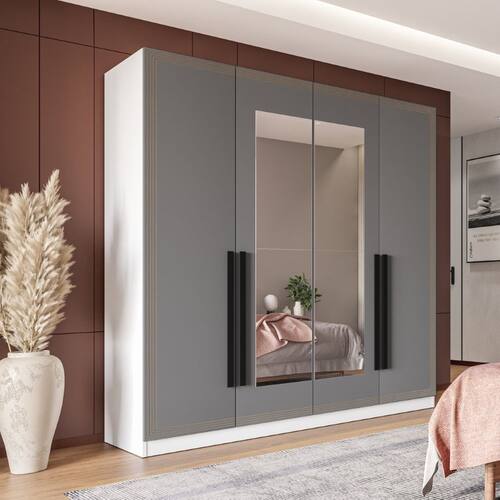 Características: Estrutura MDP Pintura FF/UV 04 Portas Articuladas com Dobradiças Metálicas 04 Gavetas com Corrediças Telescópicas 04 Cabideiros em Alumínio 02 Maleiros Espaçosos Prateleiras com Amplo Espaço Puxadores Externos Detalhes Usinados Peso suportado nas Prateleiras Estruturais: 10kg Distribuídos Peso suportado nas Prateleiras: 5kg Distribuídos Peso suportado nas Gavetas: 3kg Distribuídos ACOMPANHA ESPELHO