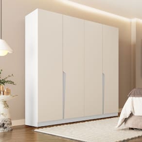 Guarda Roupa Roupeiro 4 Portas 4 Gavetas Porto Branco Creme Politorno Móveis - Branco | Bege