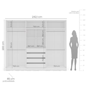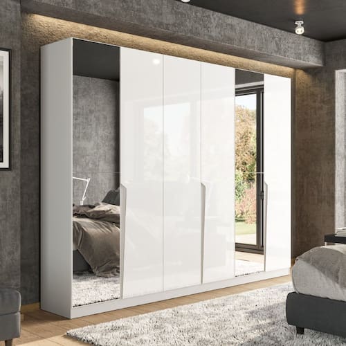 Guarda Roupa Roupeiro 6 Portas 4 Gavetas com Espelho Porto Branco Politorno Móveis