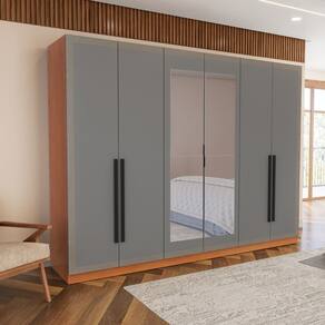 Características: Estrutura MDP Pintura FF/UV 06 Portas Articuladas com Dobradiças Metálicas 04 Gavetas com Corrediças Telescópicas 04 Cabideiros em Alumínio 03 Maleiros Espaçosos Prateleiras com Amplo Espaço Puxadores Externos Detalhes Usinados Peso suportado nas Prateleiras Estruturais: 10kg Distribuídos Peso suportado nas Prateleiras: 5kg Distribuídos Peso suportado nas Gavetas: 3kg Distribuídos ACOMPANHA ESPELHO