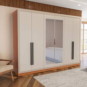 Características: Estrutura MDP Pintura FF/UV 06 Portas Articuladas com Dobradiças Metálicas 04 Gavetas com Corrediças Telescópicas 04 Cabideiros em Alumínio 03 Maleiros Espaçosos Prateleiras com Amplo Espaço Puxadores Externos Detalhes Usinados Peso suportado nas Prateleiras Estruturais: 10kg Distribuídos Peso suportado nas Prateleiras: 5kg Distribuídos Peso suportado nas Gavetas: 3kg Distribuídos ACOMPANHA ESPELHO