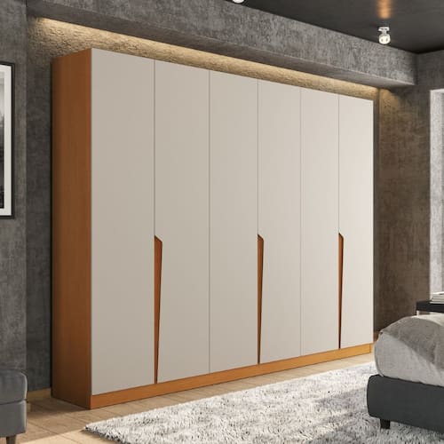 Características: Estrutura MDP Pintura FF/UV 06 Portas com dobradiças metálicas 04 Gavetas com corrediças telescópicas 04 Cabideiros em alumínio 03 Maleiros espaçosos 04 Nichos práticos Puxadores em cava usinada Possui prateleiras com amplo espaço Peso suportado nas Prateleiras Estruturais: 10kg Peso suportado nas Prateleiras: 05kg Peso suportado nas Gavetas: 03kg