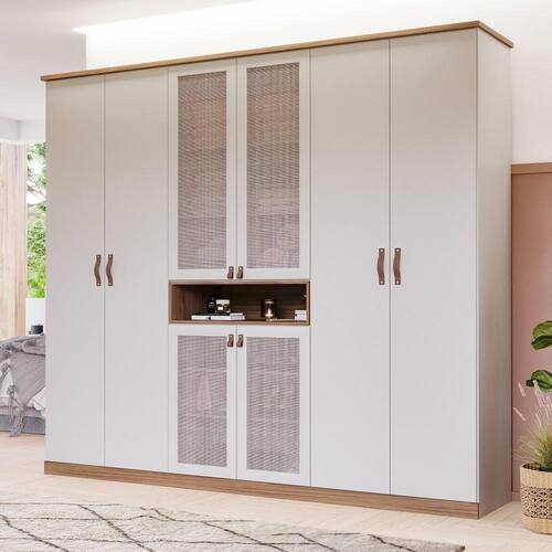O guarda Roupa Santorini da Panan é perfeito para montar o seu ambiente do jeito que quiser. Produzido em material resistente MDF. companha vários compartimentos grandes para melhor organização. Contém 8 portas, 1 nicho, 3 sapateiras, 6 gavetas, 2 cabideiros e 5 prateleiras. Sendo uma ótima escolha para você que busca conforto e praticidade.