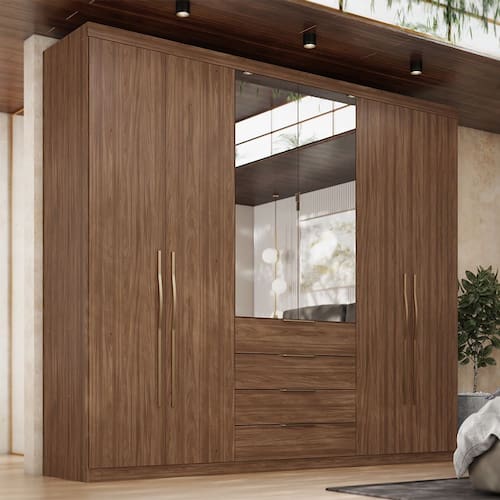Características: Estrutura em MDP Acabamento em Pintura UV 04 Portas com dobradoças metálicas 04 Gavetas com corrediças telescópicas Possui Espelho Calceiro Metálico Cabideiro Metálico Puxadores em Plástico ABS.