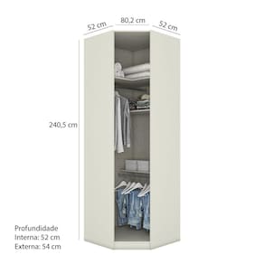 CaracterísticasEstrutura em MDP e MDF.Pintura em acabamento UV.01 Porta articulada com dobradiças metálicas amortecimento.Prateleiras com amplo espaço.Cabideiro em alumínio.Puxador de alumínio.OBJETOS DECORATIVOS NÃO ACOMPANHAM OS PRODUTOSLimpar o produto utilizando apenas pano umedecido com água, nunca utilizar produtos abrasivos ou esponjas de aço.Acompanha manual e todos os acessórios para montagem.Recomendamos que a montagem seja feita por um profissional qualificado.Garantia de 03 meses para eventuais defeitos de fabricação.DimensõesAltura 240,5 cmLargura 81 cmProfundidade 54 cmItens Inclusos01 Guarda Roupa Canto (MC07) .Peso Total: 94 Kg3 volumes.ATENÇÃO OBSERVAÇÕES IMPORTANTESAs imagens são meramente ilustrativas, não serão enviados objetos de decoração, eletrônicos e demais itens que não estejam especificados nos itens inclusos. É INDISPENSÁVEL que seja feita a conferência do produto no ato da entrega e caso haja alguma divergência, seja feito o contato imediato com a loja e notificação no canhoto. CONSTATANDO DEFEITO NO ATO DA ENTREGA O PRODUTO NÃO DEVERÁ SER MONTADO ATÉ TRATATIVA COM A LOJA. NÃO SERÁ EFETUADA A TROCA DO PRODUTO APÓS A MONTAGEM TER SIDO EFETUADA. A montagem é de total responsabilidade do cliente e defeito na montagem serão tratadas como assistências. OS PROCESSOS DE PENDÊNCIAS SERÃO TRATADOS MEDIANTE A FOTOS PARA ANALISE E CONFERÊNCIA DA INFORMAÇÃO. As cores do produto podem variar de acordo com o seu monitor, a iluminação do ambiente em que você está e até mesmo a sua percepção visual. Não nos responsabilizamos, no ato da entrega, por subir escadas e elevadores. Eventuais despesas são de responsabilidade do cliente. Dúvidas serão tratadas via protocolo.