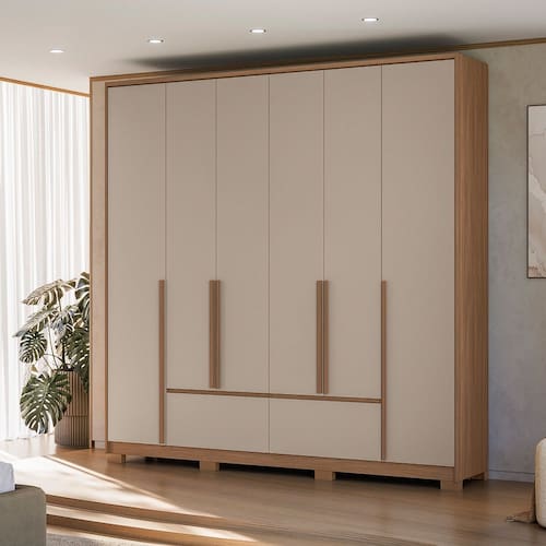 Guarda Roupa Roupeiro Denver 06 Portas 04 Gavetas Carvalho Fendy Moval - Marrom | Fendi