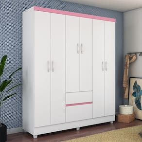 Guarda Roupa Roupeiro Flash II Branco Rosa Flex Demóbile