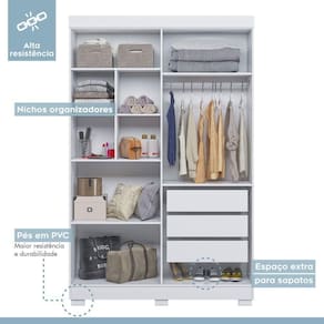 Um quarto funcional e bem arrumado precisa de um bom guarda-roupa, né? O modelo Flórida é a opção perfeita para você que busca mais praticidade e não abre mão de bom gosto na decoração. Dispondo de portas e gavetas, ele tem compartimentos para suas peças vestuário, calçados, acessórios e até cosméticos ou roupas de cama - tudo depende da organização que melhor atender à sua rotina.