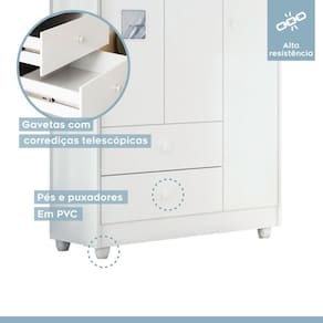 Item necessário para o bom funcionamento do quarto do seu filho, o Guarda-Roupa Life é o móvel ideal para que a arrumação do ambiente fique em dia. Equipado com 3 portas e 2 gavetas, ele tem compartimentos para garantir que peças fundamentais à sua rotina estejam sempre à mão. De quebra, o visual básico com coloração a esse tipo de mobiliário oferece sofisticação e bom gosto para a decoração do seu espaço. Só benefícios para um lar incrível como o seu.