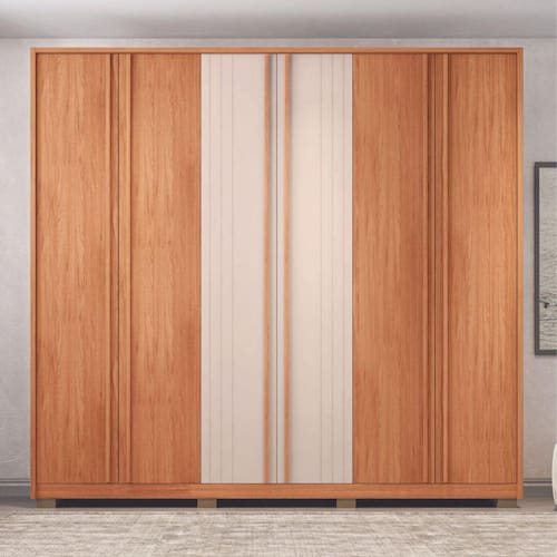 Modelo: Mozart 6 portas com puxadores resistentes 4 gavetas Corrediças telescópicas Espaço colmeia com 6 nichos 14 repartições internas amplas 3 cabideiros em alumínio Espaço de maleiros superiores