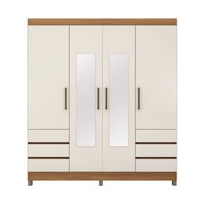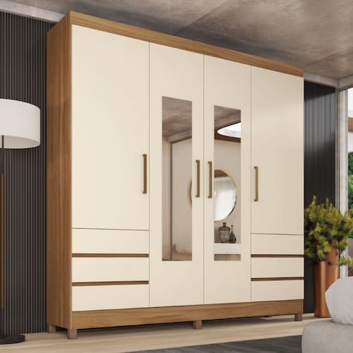 Guarda Roupa Roupeiro Roma 4 Portas com Espelho 6 Gavetas Amendola Touch Off White Demóbile - Marrom | Off White