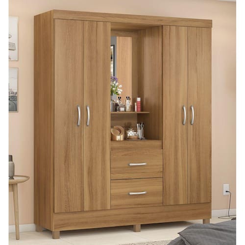 Características:Estrutura em MDPAcabamento em Pintura UV 04 Portas com dobradiças Metalicas 02 Gavetas com Corrediças MetálicasCabideiros de MetalicoPuxadores em plástico ABSPrateleiras com Amplo espaço *Acompanha Espelho OBJETOS DECORATIVOS NÃO ACOMPANHAM O PRODUTO.Limpar utilizando apenas pano umedecido com água, nunca utilizar abrasivos ou esponjas de aço. Acompanha manual e todos os acessórios para montagem. Recomendamos que a montagem seja feita por um profissional. Garantia de 03 meses para eventuais defeitos de fabricação.Dimensões:Altura: 181 cmLargura: 148 cmProfundidade: 47 cmItens Inclusos:01 Guarda Roupa Informações de Transporte:Peso Total: 97 Kg2 VolumesATENÇÃO, OBSERVAÇÕES IMPORTANTES.As imagens são meramente ilustrativas, não serão enviados objetos de decoração, eletrônicos e demais itens que não estejam especificados nos itens inclusos. É indispensável que seja feita a conferência do produto no ato da entrega e caso haja alguma divergência, seja feito o contato imediato com a loja e notificação no canhoto. Constatando defeito no ato da entrega o produto não deverá ser montado até tratativa com a loja. Não será efetuada a troca do produto após a montagem ter sido efetuada. A montagem é de total responsabilidade do cliente e defeitos na montagem serão tratadas como assistências. Os processos de pendências serão tratados mediante a fotos para analise e conferência da informação. As cores do produto podem variar de acordo com o seu monitor, a iluminação do ambiente em que você está e até mesmo a sua percepção visual. Não nos responsabilizamos, no ato da entrega, por subir escadas e elevadores. Eventuais despesas são de responsabilidade do cliente. Dúvidas serão tratadas via protocolo.