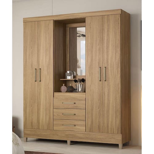 Características:Estrutura em MDPAcabamento em Pintura UV 04 Portas com dobradiças Metálicas03 Gavetas com Corrediças MetálicasCabideiros MetálicosPuxadores em plástico ABSPrateleiras com Amplo espaço *Acompanha EspelhoOBJETOS DECORATIVOS NÃO ACOMPANHAM O PRODUTO.Limpar utilizando apenas pano umedecido com água, nunca utilizar abrasivos ou esponjas de aço. Acompanha manual e todos os acessórios para montagem. Recomendamos que a montagem seja feita por um profissional. Garantia de 03 meses para eventuais defeitos de fabricação.Dimensões:Altura: 201 cmLargura: 165 cmProfundidade: 47 cmItens Inclusos:01 Guarda Roupa Informações de Transporte:Peso Total: 116 Kg2 VolumesATENÇÃO, OBSERVAÇÕES IMPORTANTES.As imagens são meramente ilustrativas, não serão enviados objetos de decoração, eletrônicos e demais itens que não estejam especificados nos itens inclusos. É indispensável que seja feita a conferência do produto no ato da entrega e caso haja alguma divergência, seja feito o contato imediato com a loja e notificação no canhoto. Constatando defeito no ato da entrega o produto não deverá ser montado até tratativa com a loja. Não será efetuada a troca do produto após a montagem ter sido efetuada. A montagem é de total responsabilidade do cliente e defeitos na montagem serão tratadas como assistências. Os processos de pendências serão tratados mediante a fotos para analise e conferência da informação. As cores do produto podem variar de acordo com o seu monitor, a iluminação do ambiente em que você está e até mesmo a sua percepção visual. Não nos responsabilizamos, no ato da entrega, por subir escadas e elevadores. Eventuais despesas são de responsabilidade do cliente. Dúvidas serão tratadas via protocolo.