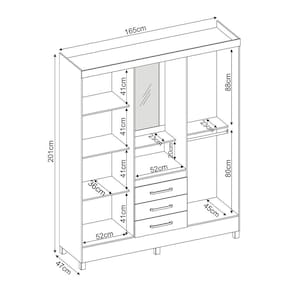 Características:Estrutura em MDPAcabamento em Pintura UV 04 Portas com dobradiças Metálicas03 Gavetas com Corrediças MetálicasCabideiros MetálicosPuxadores em plástico ABSPrateleiras com Amplo espaço *Acompanha EspelhoOBJETOS DECORATIVOS NÃO ACOMPANHAM O PRODUTO.Limpar utilizando apenas pano umedecido com água, nunca utilizar abrasivos ou esponjas de aço. Acompanha manual e todos os acessórios para montagem. Recomendamos que a montagem seja feita por um profissional. Garantia de 03 meses para eventuais defeitos de fabricação.Dimensões:Altura: 201 cmLargura: 165 cmProfundidade: 47 cmItens Inclusos:01 Guarda Roupa Informações de Transporte:Peso Total: 116 Kg2 VolumesATENÇÃO, OBSERVAÇÕES IMPORTANTES.As imagens são meramente ilustrativas, não serão enviados objetos de decoração, eletrônicos e demais itens que não estejam especificados nos itens inclusos. É indispensável que seja feita a conferência do produto no ato da entrega e caso haja alguma divergência, seja feito o contato imediato com a loja e notificação no canhoto. Constatando defeito no ato da entrega o produto não deverá ser montado até tratativa com a loja. Não será efetuada a troca do produto após a montagem ter sido efetuada. A montagem é de total responsabilidade do cliente e defeitos na montagem serão tratadas como assistências. Os processos de pendências serão tratados mediante a fotos para analise e conferência da informação. As cores do produto podem variar de acordo com o seu monitor, a iluminação do ambiente em que você está e até mesmo a sua percepção visual. Não nos responsabilizamos, no ato da entrega, por subir escadas e elevadores. Eventuais despesas são de responsabilidade do cliente. Dúvidas serão tratadas via protocolo.