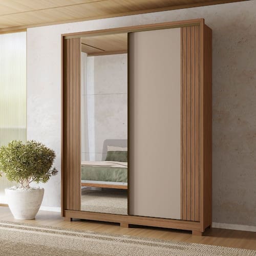 Guarda Roupa Roupeiro Toronto com Espelho 02 Portas 03 Gavetas Carvalho Fendy Moval - Marrom | Fendi