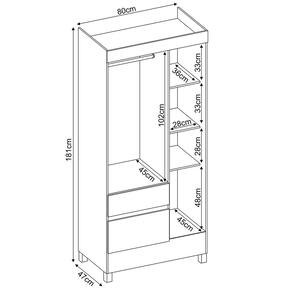 Características: Estrutura em MDP Pintura UV 03 Portas com dobradiças metálicas 02 Gavetas com corrediças metálicas Cabideiro em madeira revestida Puxadores em plástico ABS Pés em PVC Amplo espaço interno