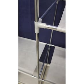 Design Inteligente e Funcional: Estrutura vertical com prateleiras e cabideiro, ideal para armazenar roupas, sapatos, toalhas e acessórios.