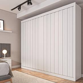 Entre os detalhes, o guarda-roupa conta com roldanas de fácil regulagem, puxador embutido em perfil bronze, além de 4 gavetas internas equipadas com corrediças telescópicas para maior praticidade. As prateleiras e cabideiros de alumínio garantem durabilidade, enquanto o sistema antiempeno e as costas parafusadas reforçam a resistência da estrutura.