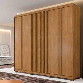 Guarda Roupa San Remo 6 Portas 6 Gavetas 9 Prateleiras Cinamomo O Guarda-Roupa San Remo e produzido em chapa de 15 mm que garante robustez e maior vida util, com design moderno conta com 6 portas, 9 prateleiras, 6 gavetas com corredicas telescopica, cabideiro em aluminio, espaco para longos, pes inclusos no produto e portas ripadas amadeiradas do produto, otimo custo-beneficio. Sua fabricacao utiliza a linha mdp perffect, que une a sustentabilidade a inovacao tecnologica, proporcionando durabilidade e facil limpeza; nosso revestimento reproduz os veios naturais da madeira que podem ser sentidos pelo tato, inspirando sofisticacao ao mobiliario. Pelo revestimento ser termofundido com alta pressao e temperatura apresenta maior compactacao das camadas o que elimina a possibilidade de empenamento do painel; superior resistencia de fixacao do parafuso o que aumenta a vida util do movel e alem disso atende aos testes definidos em normas, conferindo resistencia a: abrasao; riscos; agentes manchadores; aderencia.; conta com boa resistencia, e facil de limpar e e ecologicamente correto, pois utiliza madeira de reflorestamento, evitando o desmatamento. Caracteristicas: Material Principal: Mdp Espessura Da Chapa: 15 mm Escala De Brilho: Fosco Acabamento: Pintura UV Sistema de montagem: parafuso, cavilha e cantoneiras metalicas Experiencia touch e wood, lamina com textura super-realista que permite a sensacao de toque autentico da madeira natural.