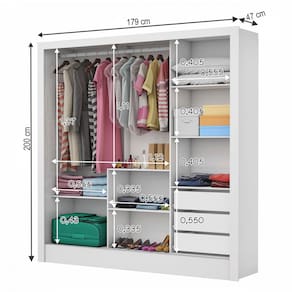 - Acompanha: Guarda-Roupa, Kit Ferragens e Manual de Montagem