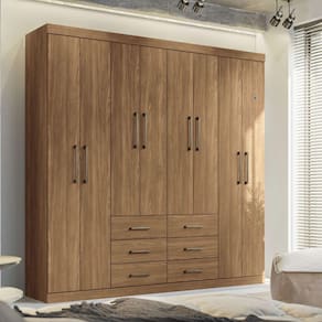 O Guarda Roupa Liverpool da Santos Andirá é um móvel prático e funcional, e se encaixa em qualquer ambiente do quarto de casal ou solteiro. Com 8 portas e 6 gavetas, esse roupeiro garante muito espaço para guardar todas as roupas. Puxadores em ABS garantem um design moderno. Internamente, possui amplas prateleiras para guardar todas as roupas de forma organizada, assim como edredons, cobertores, caixas, travesseiros, decoração, etc. Possui 3 cabideiros em alumínio para pendurar todas as roupas -casacos, vestidos, camisas, blusas- com muita organização e segurança. O acabamento na cor madeirada é com verniz fosco e na cor off White é com verniz brilho, tudo dentro dos padrões de preservação do meio ambiente. Um guarda roupa de casal completo e muito prático para o seu quarto!