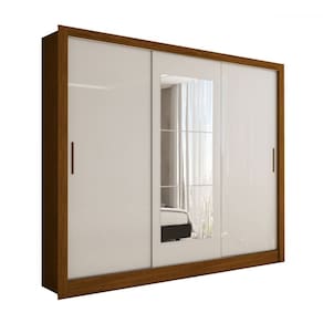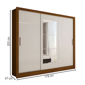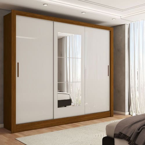 O(a) Guarda-Roupa Sebastian 3 Portas com Espelho 3 Gavetas Cinamomo/Branco - Loja é produzido em MDP na escala de brilho Fosco, e possui um grau de dificuldade de montagem: Médio.