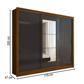 O(a) Guarda-Roupa Sebastian 3 Portas com Espelho 3 Gavetas Cinamomo/Preto - Loja é produzido em MDP na escala de brilho Fosco, e possui um grau de dificuldade de montagem: Médio.