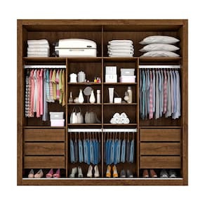 Equipado com 6 gavetas de corrediças telescópicas, 8 prateleiras versáteis, portas espelhadas, compartimentos especialmente projetados para malas e roupas de cama, e divisão interna inteligente ELE e ELA que permite uma organização personalizada e eficiente. Os cabideiros e calceiros metálicos são espaçosos e robustos, proporcionando suporte ideal para suas roupas e acessórios.