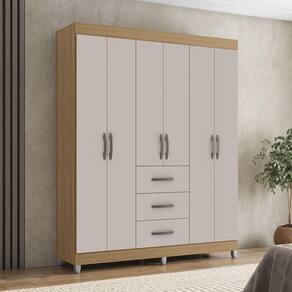 O Guarda Roupa Sevilha e um produto de alta qualidade, fabricado em MDP 15 mm, com portas e gavetas robustas e funcionais. Possui 6 portas e 3 gavetas, oferecendo amplo espaco para armazenar roupas e acessorios.