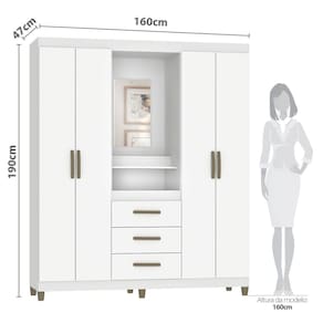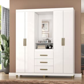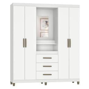 O roupeiro Sintra possui várias vantagens e diferenciais, sendo um excelente produto para o cliente exigente que busca um guarda-roupa diferenciado e bonito, mas sem abrir mão da qualidade e praticidade na hora de organizar seus pertences. Possui capelinha com espelho incluso de 52cm x 30cm x 3cm e um compartimento para objetos. O roupeiro tem 4 portas com dobradiças metálicas e 3 gavetas com corrediças telescópicas. Possui um excelente aproveitamento do espaço interno, com cabideiro, calceiros e prateleiras. O acabamento é Pintura UV, o que garante durabilidade e sofisticação. O interno na cor linho é um charme à parte. Os pés e puxadores são na cor bronze. Com certeza esse é o produto que faltava para deixar seu dormitório lindo e organizado! Aproveite e adquira agora mesmo! Acabamento da Prateleira: Pintura UV Escala de Brilho da Prateleira: Semi-Brilho Possui Cabideiros: Sim Acabamento da Gaveta: Pintura UV Escala de Brilho da Gaveta: Brilhante Material do Puxador da Gaveta: Plástico Possui Organizador de Gaveta: Não Acabamento da Porta: Pintura UV Escala de Brilho da Porta: Brilhante Altura dos Pés: 7 cm Ambiente Principal: Quarto codigo_ean: 7900288065148 Complexidade da Montagem: Baixa: pode ser montado por uma pessoa sozinha Cor: Branco Cor da Porta: Branco Cor do Produto: Branco Cor Interna: Linho Escala de Brilho: Brilhante Espessura da Estrutura (mm): 12 mm Espessura das Portas (mm): 12 mm Espessura das Prateleiras (mm): 12 mm Espessura do Fundo (mm): 3 mm Espessura do Fundo das Gavetas (mm): 3 mm Gaveta com Chave: Não Informações Complementares: Acabamento Pintura UV, Espelho incluso no roupeiro, compartimento para pequenos objetos, interno na cor linho, corrediças telescópicas, pés cor bronze, possui calceiro. Itens Inclusos: 1 Móvel, +1 Kit Acessórios,+1 Manual de Montagem Linha ou Coleção: Dormitórios Manual de Montagem e Instalação: https://product-hub-prd.madeiramadeira.com.br/977043/documents/7c4a6e68-8f2d-40c7-a515-7d13f06037952681242406517393881472255.pdf Marca: Fellicci Material da Gaveta: MDP Material da Porta: MDP Material da Prateleira: MDP Material dos Pés: Plástico Material Principal: MDP modular: Não Necessita Montagem: Sim Origem do Produto: Nacional Peso: 75,46 kg Peso Máximo por Gaveta: 5 kg Peso Máximo por Prateleira: 10 kg Possui Capelinha: Sim Possui Espelho: Não Possui Espelho Interno: Sim Possui Pés: 06 Possui Portas: Sim Possui Prateleiras: Sim Produto Montado: Sim Quantidade de Gavetas: 03 Gavetas Quantidade de Prateleiras: 03 Prateleiras Recomendações de Uso, Manutenção e Limpeza: Pano levemente úmido Sistema de Montagem: parafusos Tipo de Corrediça da Gaveta: Metálica Telescópica Tipo de Dobradiça/Corrediça da Porta: Metálica Tipo de Gaveta: Externa Tipo de Guarda-Roupa: Casal Tipo de Puxador da Gaveta: Externo Tipo de Puxador da Porta: Externo