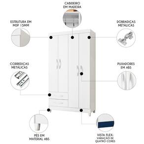 Este Guarda Roupa Solteiro 103cm 4 Portas Dony A02 Branco, da Mpozenato é a escolha ideal para quem busca organização, resistência e sofisticação no Quarto de Solteiro.