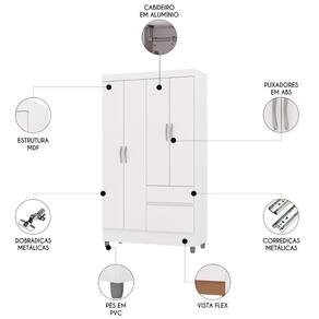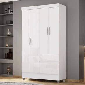 Guarda Roupa Solteiro 103cm Com 4 Portas Ideal Branco - Vila Rica