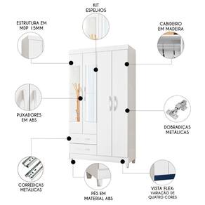 Este Guarda Roupa Solteiro 103cm com Espelho Dony A02 Branco, da Mpozenato é a escolha ideal para quem busca organização, resistência e sofisticação no Quarto de Solteiro.