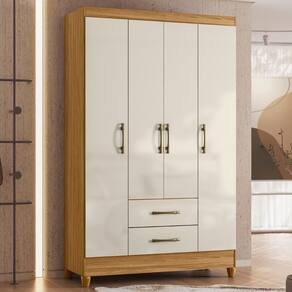 Unindo elegância e praticidade, o Guarda Roupa Solteiro 111cm 4 Portas Évora M07 Freijó/Off, da Mpozenato, é a escolha indispensável para o seu quarto!
