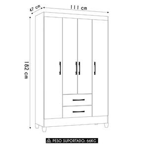 O Roupeiro possui quatro portas com dobradiças metálicas e puxadores de poliestireno. Sua excelente repartição conta com três prateleiras para acomodar seus itens de maneira prática. Dispõe de dois cabideiros plásticos, ideais para pendurar roupas de forma eficiente de modo que elas fiquem sempre bem organizadas e sem amassar. Além de duas gavetas com corrediças metálicas para acessórios, roupas dobradas, dentre outros objetos. Os pés em PVC facilitam a limpeza mantendo tudo sempre impecável. Com estrutura em MDP de 12/15mm e acabamento em pintura UV, esse Guarda Roupa Solteiro une beleza, resistência e organização, sendo a escolha ideal para otimizar o espaço e agregar funcionalidade ao seu Quarto. Não perca a oportunidade de transformar seu ambiente com este móvel completo e versátil.