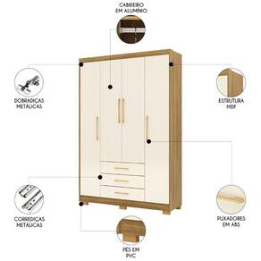 Guarda Roupa Solteiro 150cm 4 Portas Espanha Nature/Champanhe - Vila Rica